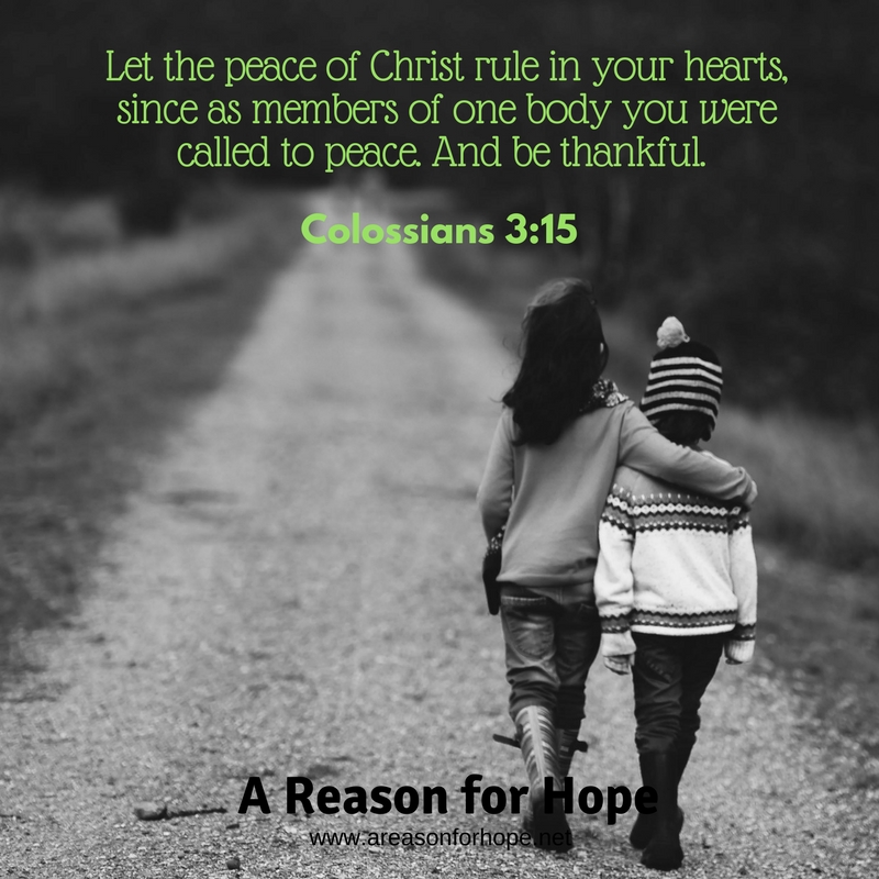 Let the peace of Christ rule in your hearts, since as members of one body you were called to peace. And be thankful. - Colossians 3:15