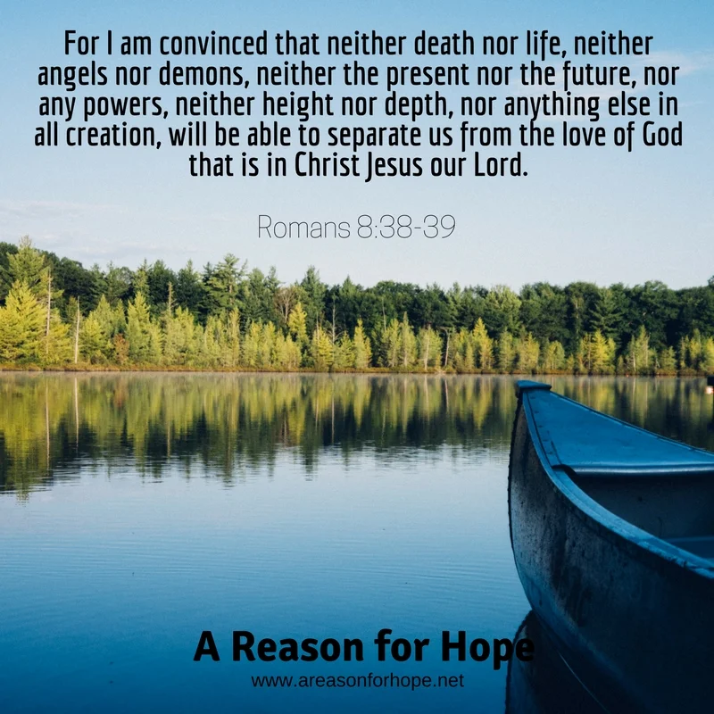 For I am convinced that neither death nor life, neither angels nor demons, neither the present nor the future, nor any powers, neither height nor depth, nor anything else in all creation, will be able to separate us from the love of God that is in Christ Jesus our Lord. – Romans 8:38-39