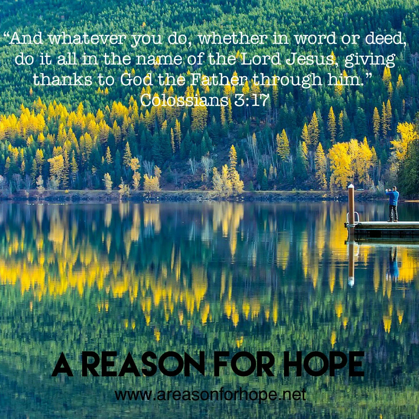 And whatever you do, whether in word or deed, do it all in the name of the Lord Jesus, giving thanks to God the Father through him.” – Colossians 3:17