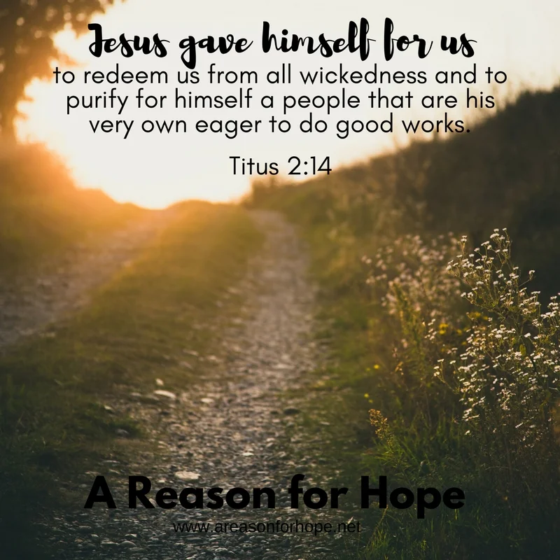 Jesus gave himself for us to redeem us from all wickedness and to purify for himself a people that are his very own eager to do good works." - Titus 2:14