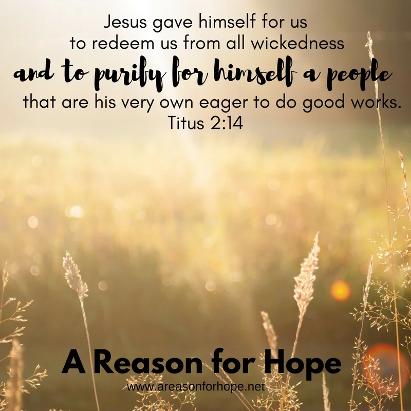 Jesus gave himself for us to redeem us from all wickedness and to purify for himself a people that are his very own eager to do good works." - Titus 2:14