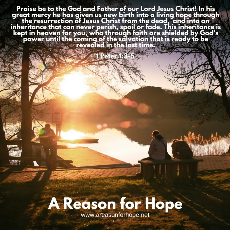 Praise be to the God and Father of our Lord Jesus Christ! In his great mercy he has given us new birth into a living hope through the resurrection of Jesus Christ from the dead, and into an inheritance that can never perish, spoil or fade. This inheritance is kept in heaven for you, who through faith are shielded by God’s power until the coming of the salvation that is ready to be revealed in the last time. – 1 Peter 1:3-5