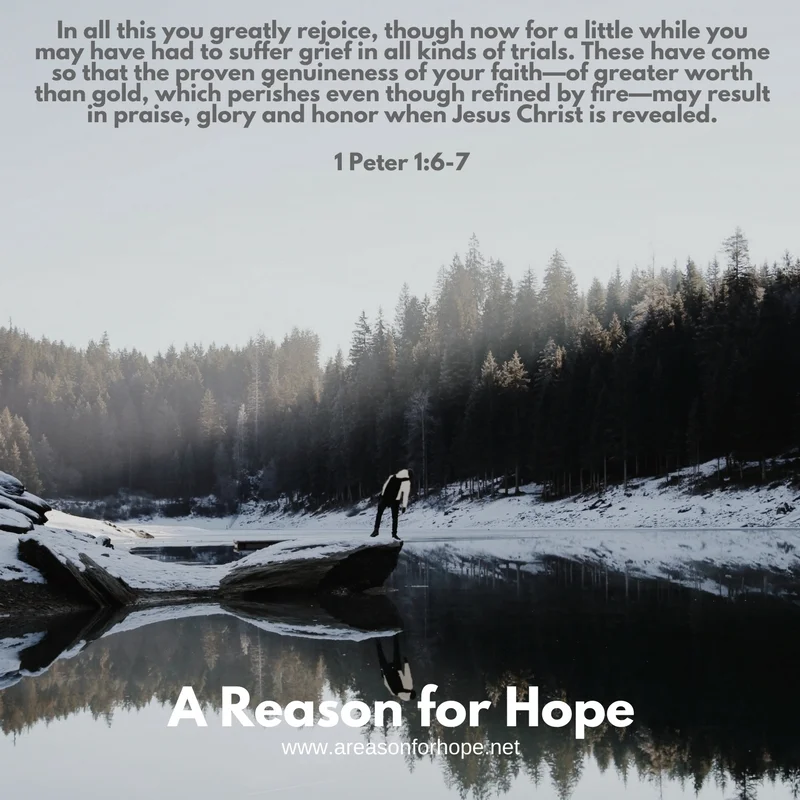In all this you greatly rejoice, though now for a little while you may have had to suffer grief in all kinds of trials. These have come so that the proven genuineness of your faith—of greater worth than gold, which perishes even though refined by fire—may result in praise, glory and honor when Jesus Christ is revealed. – 1 Peter 1:6-7