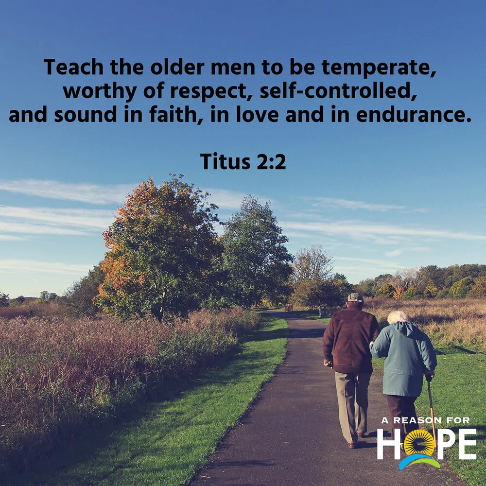 Teach the older men to be temperate, worthy of respect, self-controlled, and sound in faith, in love and in endurance. - Titus 2:2